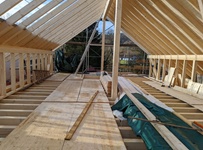 Der Dachstuhl wird aufgerichtet und das Dach geschlossen. Kurz vor Weihnachten feiern wir Richtfest :-)