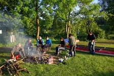 Ich selbst konnte erst am Freitag frühmorgens dazu stoßen und kam gegen 9 Uhr mit Mathis in Treuchtlingen an. Schnell waren die Boote zur Fahrt gerichtet und es konnte losgehen. Das Wetter hatte ein Einsehen. Auch wenn es bewölkt war, blieben wir an diesem zweiten Tag doch trocken. Nach wenigen Kilometern grüßten die Burgruine und das ehemalige Augustinereremitenkloster Pappenheim. Nach der Hälfte der Tagesstrecke machten wir bei Zimmern Rast, bevor wir weiter an Solnhofen vorbei fuhren. Linker Hand passierten wir noch die Felsformation der 12 Apostel bevor wir unser Lager in Hammermühle aufschlugen. Nachdem auch Reinhard angekommen war, holten wir die Autos und setzten eines nach Eichstätt vor. Besonderen Gefallen fand die Bootsrutsche direkt beim Campingplatz und so gab es einige, die es sich nicht nehmen ließen, diese gleich mehrfach zu befahren. Den Abend verbrachten wir dann in gemütlicher Runde am Lagerfeuer.