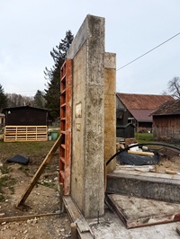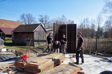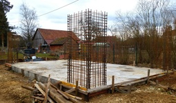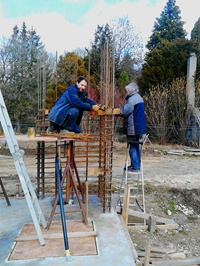 Wir armieren die Ecken und setzen die Schalung . Danach werden die Ecken betoniert