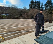 Der Dachstuhl wird aufgerichtet und das Dach geschlossen. Kurz vor Weihnachten feiern wir Richtfest :-)