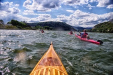Am Donnerstag setzten wir gegen 17 Uhr in Mainz-Mombach ein. Starker Wind war für die schönen Wellen verantwortlich und wir paddelten 23 km bis zum Campingplatz bei Geisenheim. Anderntags stand das sagenumwobene Binger Loch und die Loreley auf dem Plan. Einen Übernachtungsplatz boten uns die Ruderer von Boppart.
