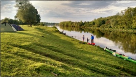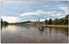 Am Samstag setzten wir gegen 12:00 Uhr in die Loire ein. Reinhards Vorschlag , zuerst einen idyllischen Bach zu paddeln, lehnte ich ab, da es mein Ziel war, anderntags den Campingplatz in Decize nach 75 km zu erreichen, um warme Duschen und Unterstand vor Dauerregen zu finden.
