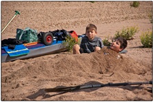 Gelitten hat unser kleiner Johannes im Kanadier, da er weder Sitz noch Paddel hatte. Zusammengekauert lag er in der Mitte des Bootes, zugedeckt durch eine Isomatte.